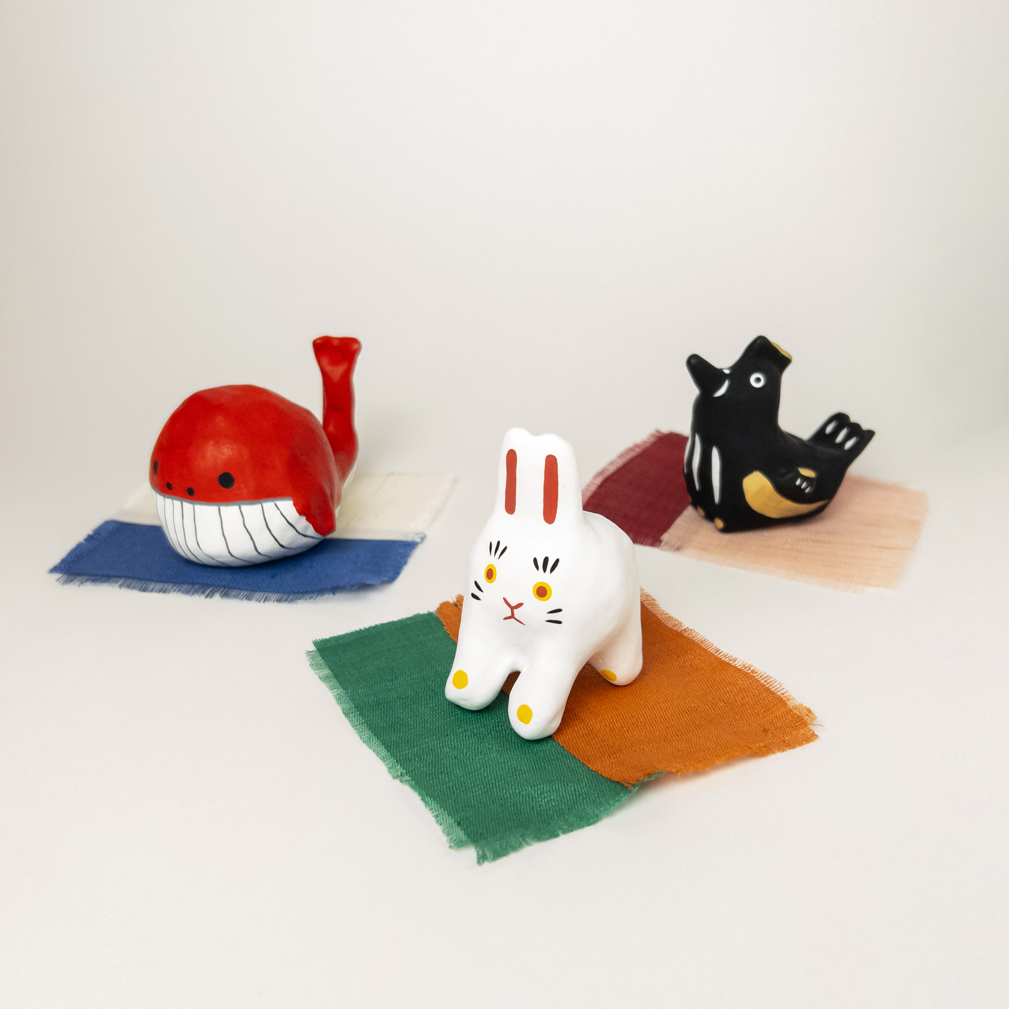 手織りの麻布の端切れを使ったミニ敷布作りと、「はりこ」の絵付けワークショップです。